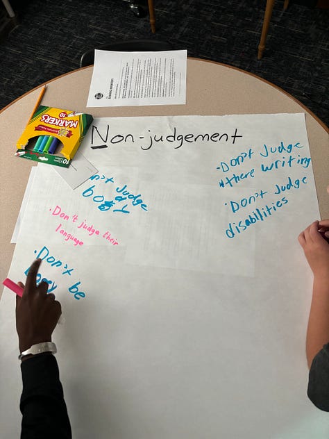 During the first week of school, I had students use IDEO’s mind mapping exercise to brainstorm collective classroom norms. We were able to use all of their divergent ideas to generate a list of meaningful agreements for the school year. In previous years, I’ve used the term, agreements. This year, I used the word, norms, but I think in the future I am going to use the word, commitments. Commitments feel more humane.