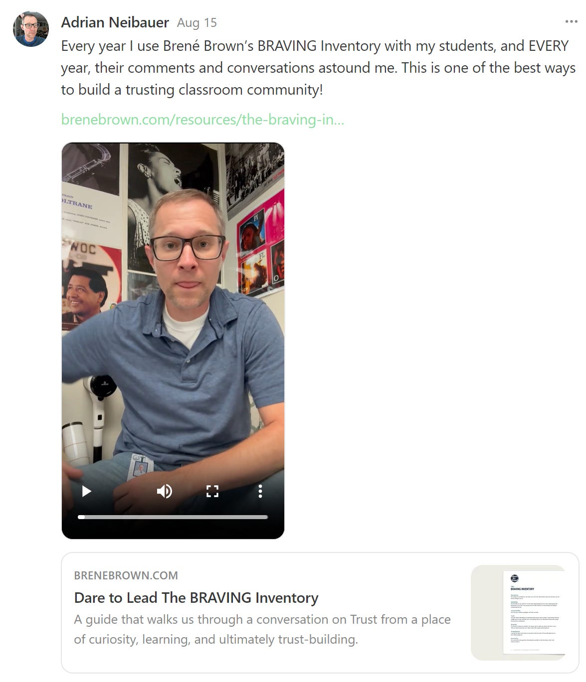 This Hub is filled with great resources for educators. In fact, Brown has teamed up with BetterUp to create the Daring Leadership Institute, which I believe will offer options for teachers and other educational leaders.