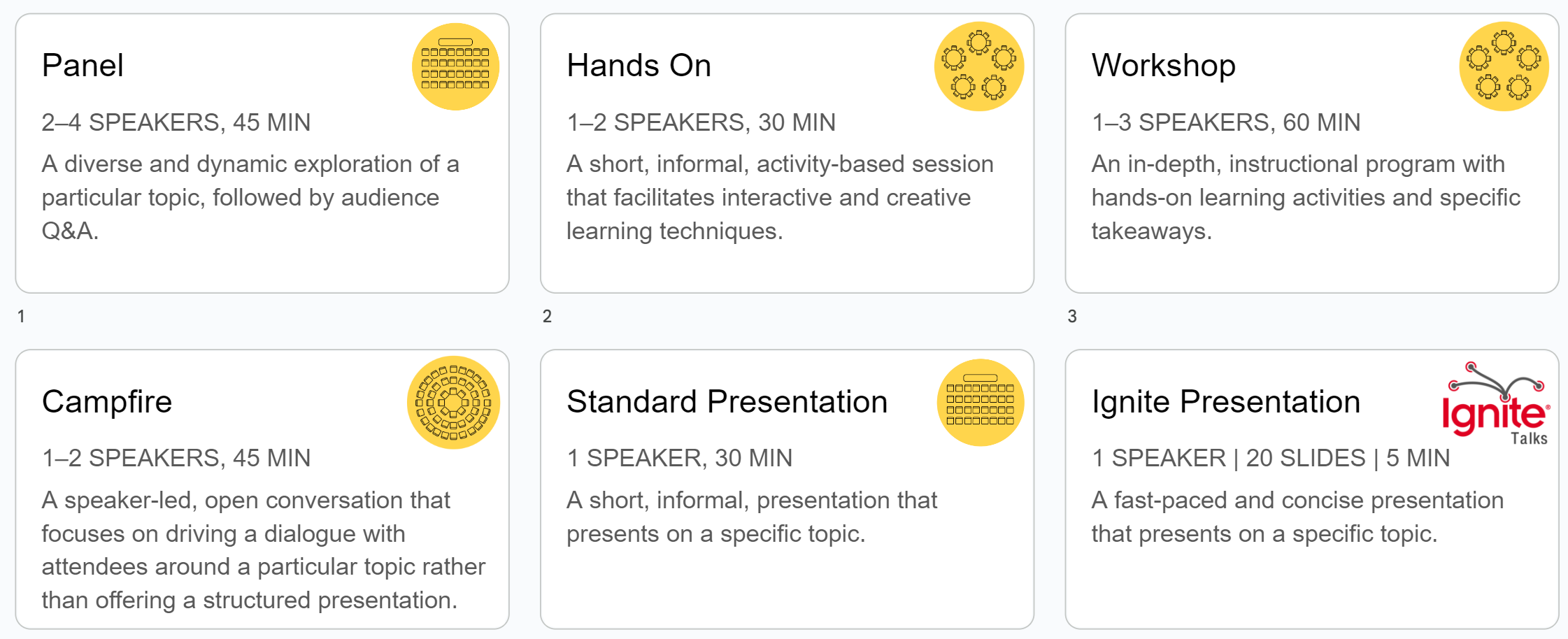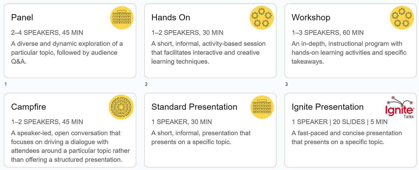 Using SXSWEDU as my template, I offered students different session options, everything from a standard presentation to a workshop or a panel discussion.
