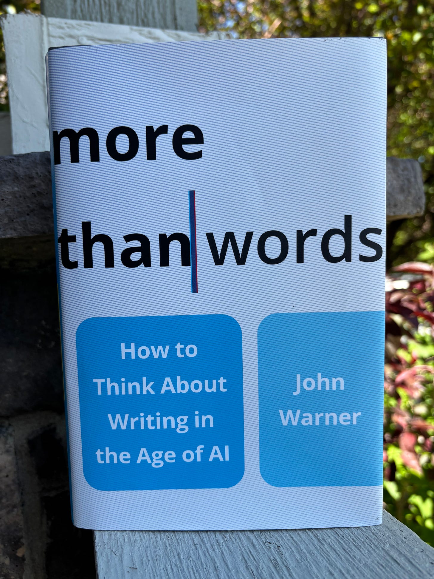 In some ways, More Than Words, is even more affirming of my pedagogical beliefs than his first two books. In reading Why They Can’t Write and The Writer’s Practice, Warner introduced me to the systemic problems associated with formulaic responses for higher test scores. In reading More Than Words, he not only gives readers a useful framework to think about generative AI, he is helping to sustain my spirit by giving me a map for rethinking my relationship to teaching during these next ten years.