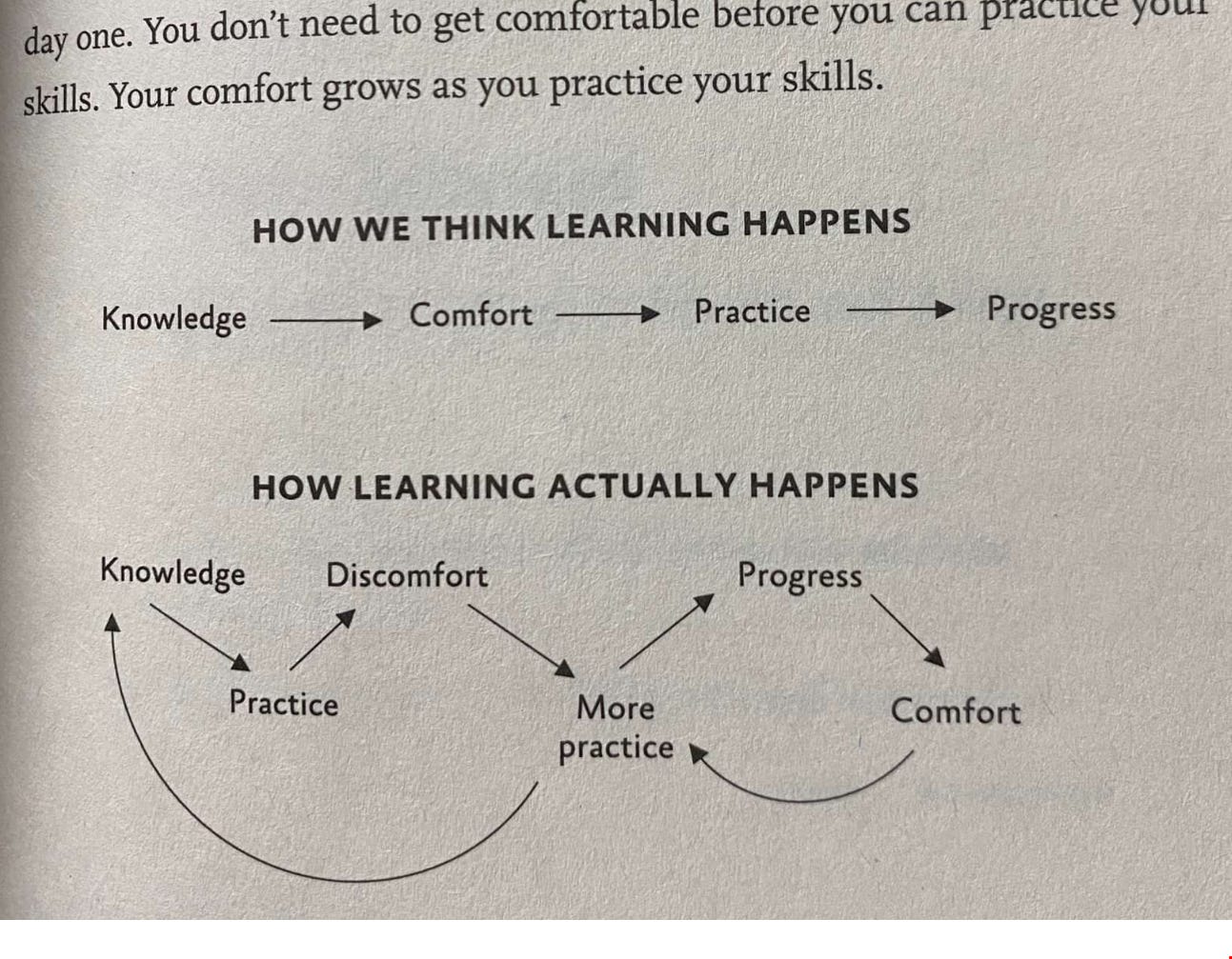 I want my students to know that, as much as I’ve tried to make learning fun this year, sometimes they need to roll up their sleeves, experience some discomfort, and work hard, doing things that are not fun. No one is going to hand them anything. They will need to work hard for it. Success never comes in huge leaps; it takes consistent work. It’s a myth that learning is a straight line from Point A to Point B. Learning is messy. There are going to be falls and times when you want to give up. Adam Grant, author of Hidden Potential: The Science of Achieving Greater Things describes how your comfort in learning grows as you practice various skills. We may think that learning happens in a linear way from knowledge to progress, but in fact, learning is circuitous.