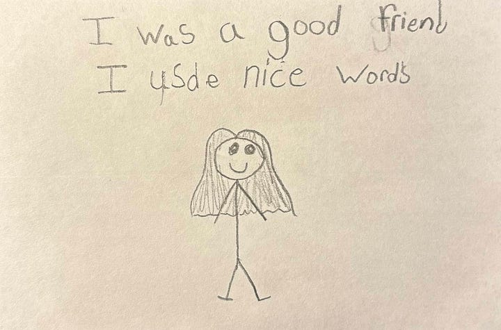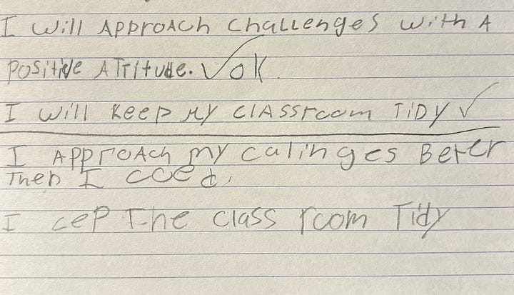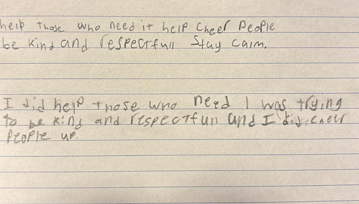 By consistently setting positive intentions, I hope to foster student efficacy and responsibility. I want my students to have a sense of control over their actions and choices. I want them to be mindful and reflective. If we continue this practice for many weeks, then students will have a record of their daily intentions end-of-day reflections and will be able to notice any patterns.