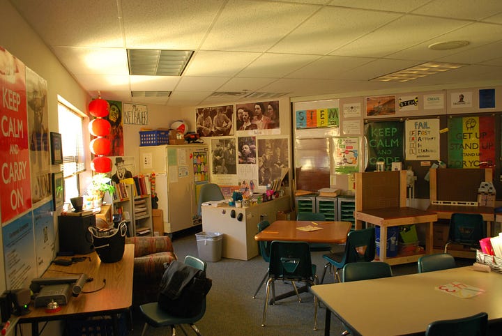 I got my first classroom unexpectedly. I had been substitute teaching in the district for a few months, leaving my resume and business card with office managers hoping to get a job interview for a permanent teaching assignment. It did not look promising. At the very least, I was hoping to get a long-term substitute job, so that I didn’t have to continue driving from school to school, picking up jobs from Kindergarten to high school. Substitute teaching wasn’t horrible, but it didn’t feel like I was actually teaching. Most days, I was left a set of instructions to play a movie, collect an assignment, or keep students at their desks with piles of busy work. I was happy for a paycheck, but what I really wanted was my own classroom. I wanted to start teaching.