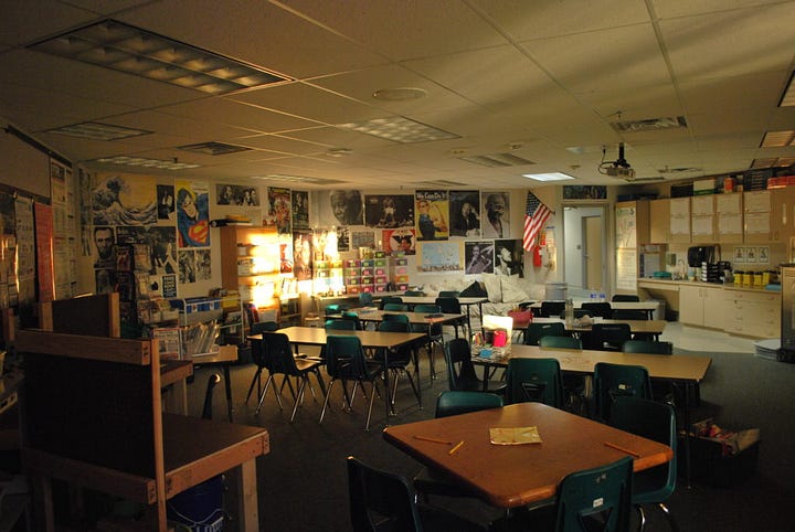 The most important thing I learned during those months of subbing was to make teaching my own: my own classroom, my own values, my own pedagogy. Succeed or fail, I need to know who I am and how I want to teach. I can learn the curriculum and work to improve my craft, but most essential is doing it in my own way. Teaching is an act of generosity and love. To be the best teacher I could means understanding who I am and then fully sharing that with my students. Teaching is personal, and so I spent the next 20 years personalizing my pedagogical practice. Making it my own.