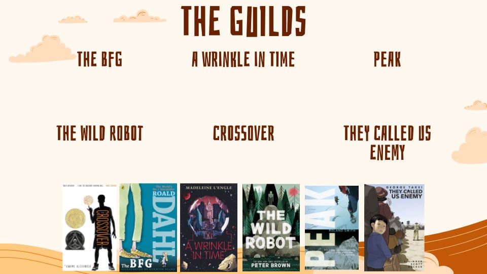 Students voted and I was able to create their guilds based on their top three choices. My goal was to have students choose a book, not a group of friends. Luckily, I was able to assign students to one of their top two choices.